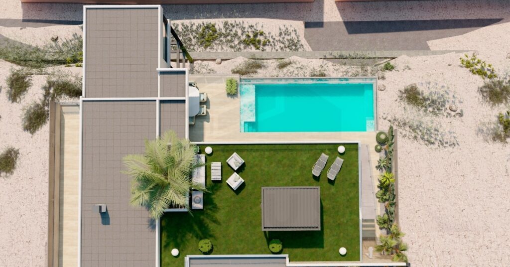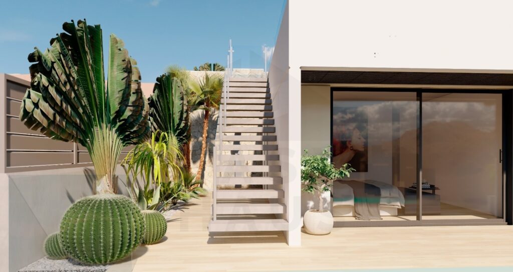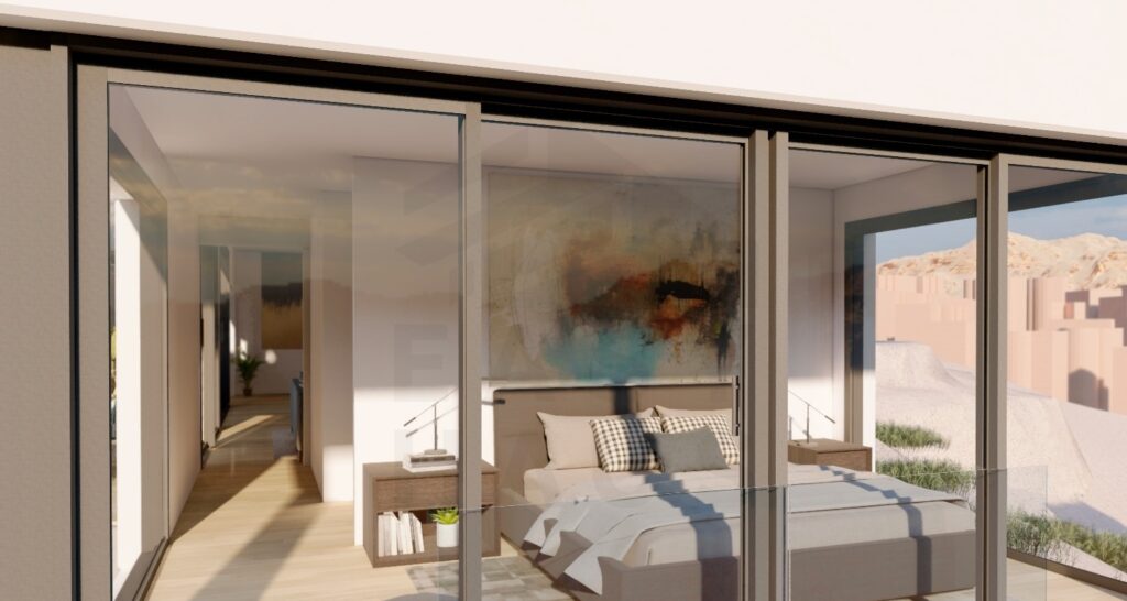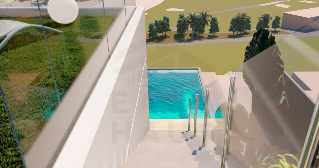 Each villa will have an infinity pool with a beach design, underfloor heating throughout the house, pool heating, automatic ventilation as well as automatic blinds inside the windows.